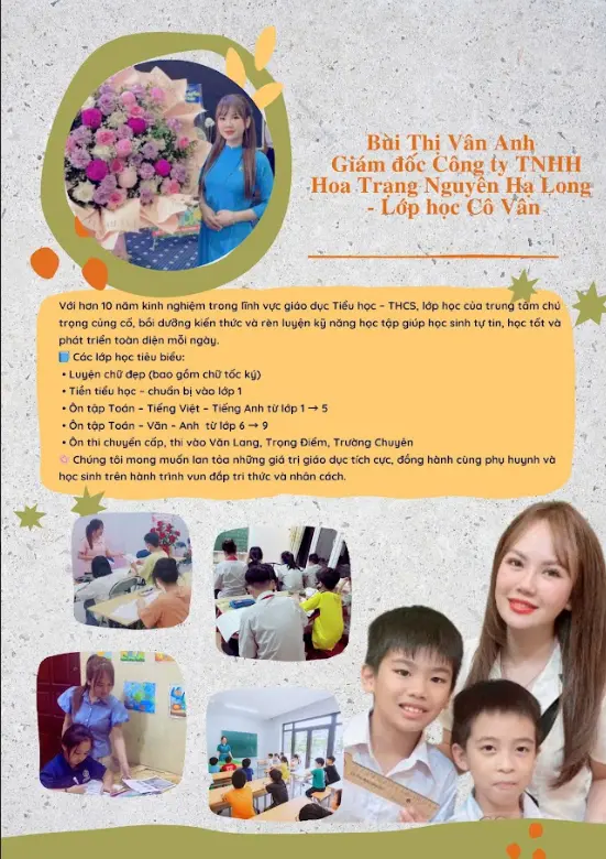 Với tâm huyết và tình yêu nghề, Cô Vân luôn không ngừng trau dồi chuyên môn, nâng cao kỹ năng giảng dạy, đổi mới phương pháp học tập nhằm giúp học sinh tiếp thu kiến thức một cách hiệu quả, vững chắc và phù hợp với từng độ tuổi. Từ những lớp học đầu tiên, Lớp học Cô Vân đã đồng hành, hỗ trợ và bồi dưỡng hàng trăm học sinh đạt thành tích học tập tốt, tạo nền tảng kiến thức và kỹ năng học tập lâu dài.
